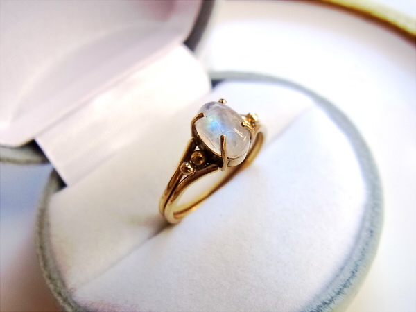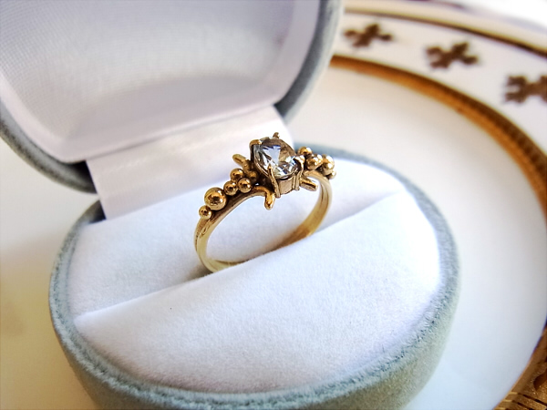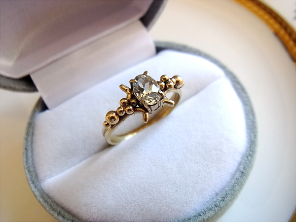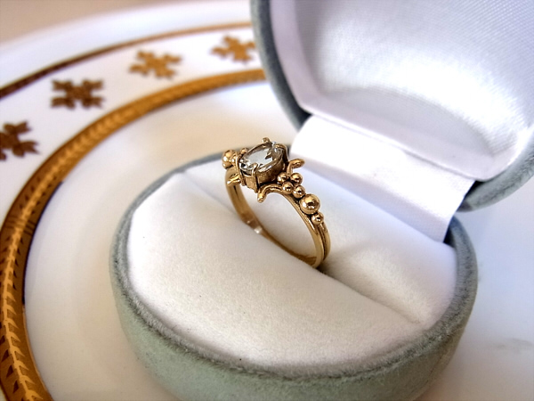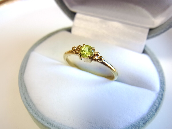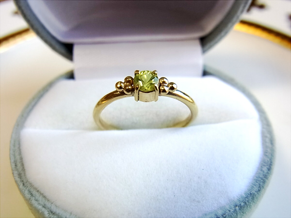 これからますます明るく暖かくなる季節によく似合う、新緑の色のリングです。