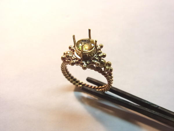 ひとまず完成しまして、軽く磨いて石を乗せてみたら…