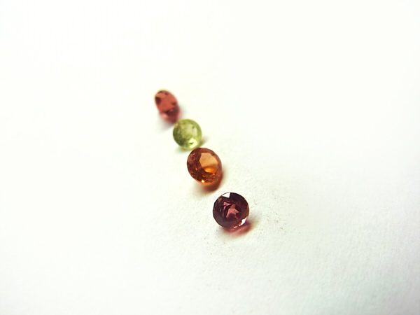 画像は左からロードライト、スペサルタイト、グロッシュラーライト、パイロープです。