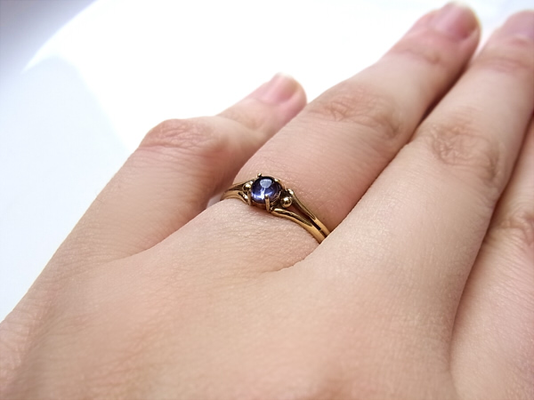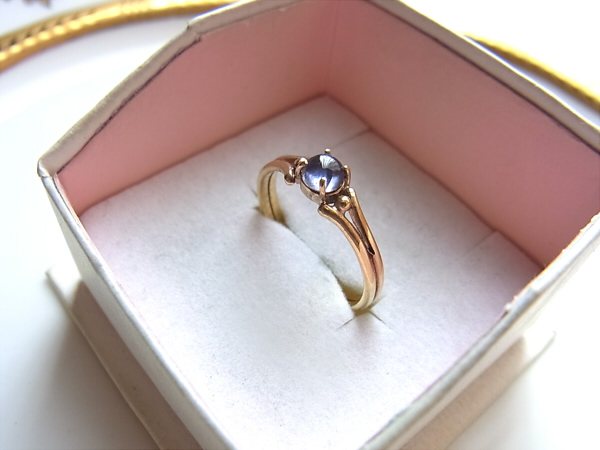 カボション・カットのアイオライトのリング。