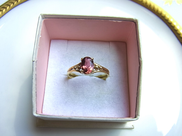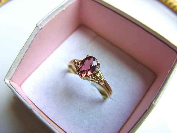 落ち着いたローズピンクのトルマリン7×5mmのリングです