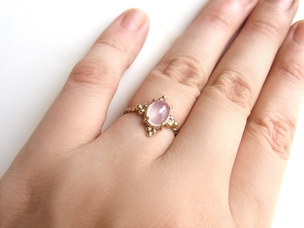 大粒で綺麗なピンクの石を仕入れることができたので作製しました。