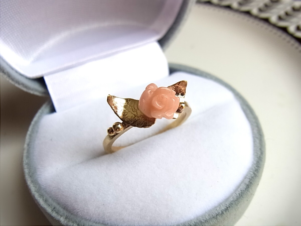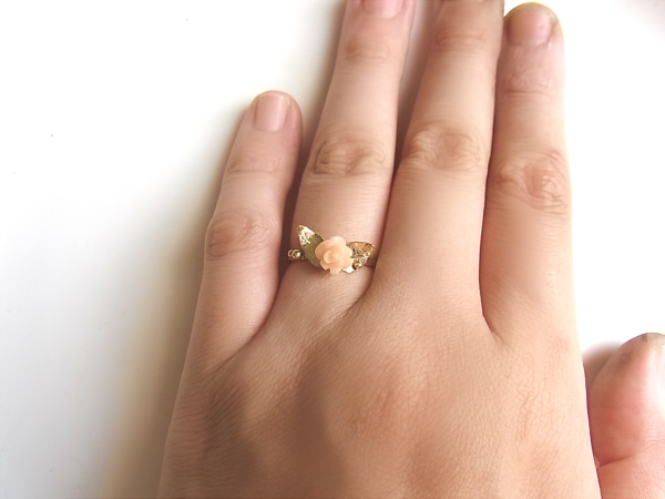 薔薇の形のピンクの珊瑚(コーラル)をリングに仕立てました。