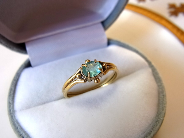 ずっと作りたくて作れなかった、ファセット・カットのアパタイトのリングです。
