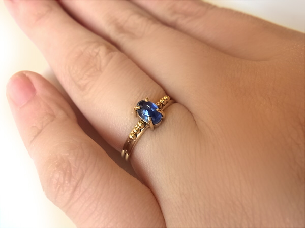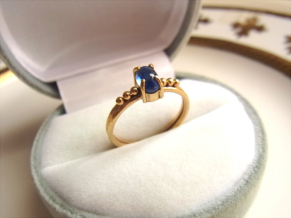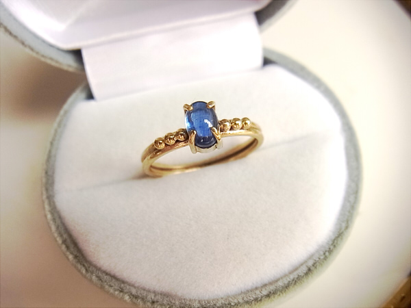 天然石質のカイヤナイトは不透明で、ガラスのような光沢から少し透け感を感じる、