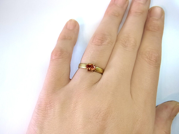 この前の平打ちリングにパパラチアを横向きに留めてみました