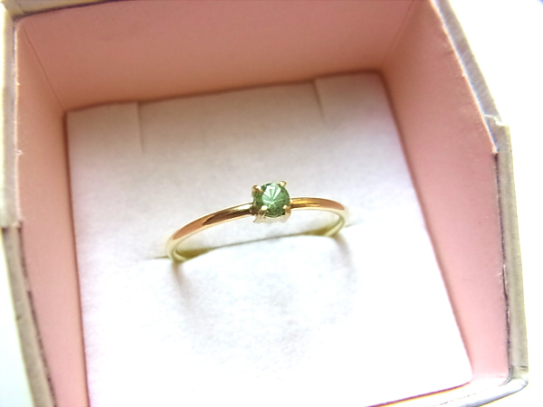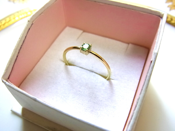 3mmの小さなミントグリーンのガーネットを細いリングアームと合わせて