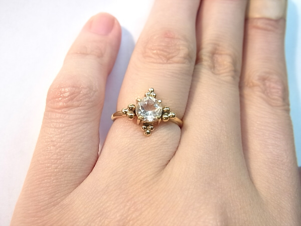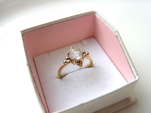 ラウンドの白水晶のリングです。