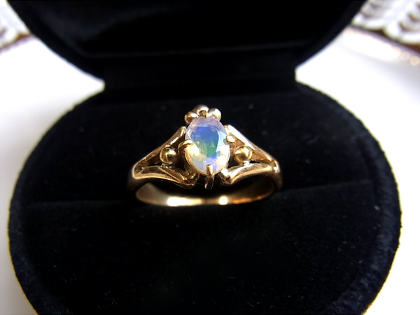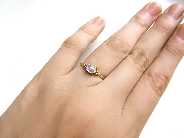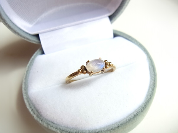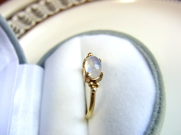 小さなレインボームーンストーンのリングです。