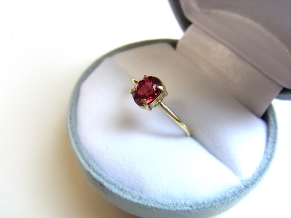 一粒のシンプルなリングですが、とても目を引く鮮烈なレッド。