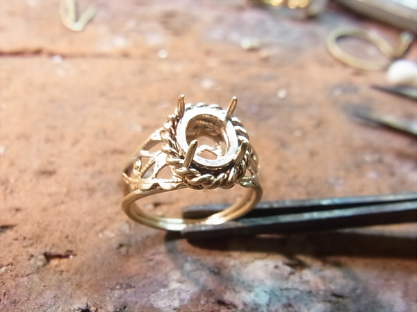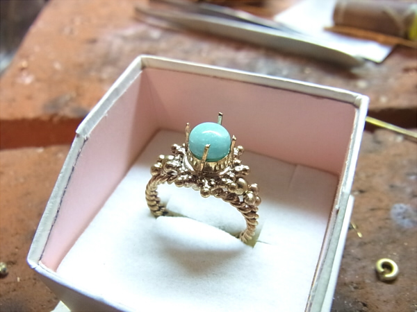 ひとまず完成しまして、軽く磨いて石を乗せてみたら…